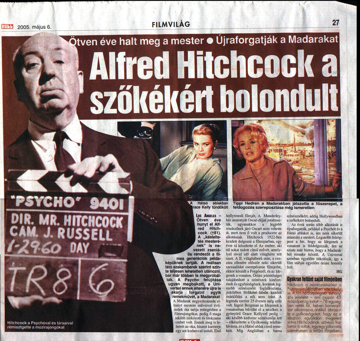 Hitchcock halálának 25.évfordulójára írta a Blikk eme cikket.