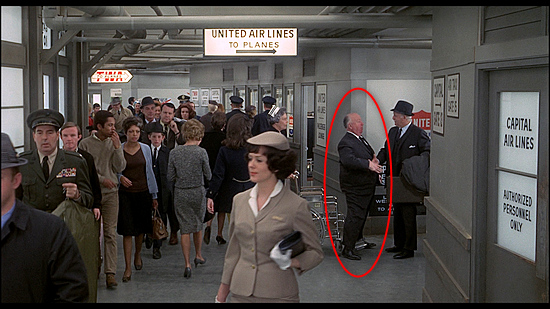 A filmben az egyik háttér neonfény (az ablakon át kinézve) Hitchcock